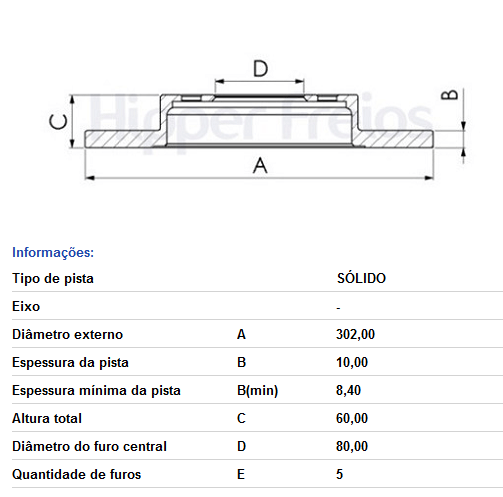 Disco De Freio Tras Solido S/cubo Mitsubishi Asx - 2.0 2008-> Outlander - 2.0 2008->