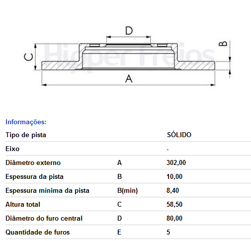 Disco De Freio Tras Solido S/cubo Mitsubishi Lancer - 2.0 2010-> Outlander - 2.4 2009-2011 Outlander - 3.0 2008->