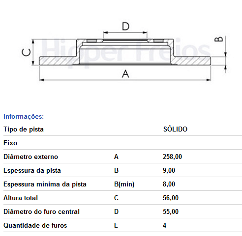Disco De Freio Tras Solido S/cubo Toyota Corolla - 1.8i 16v 2003-02/2008 Fielder - 1.8 16v 2004-02/2008